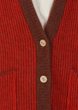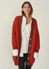 The Vitow Midi Cardigan by American Vintage features a v-neckline, button opening, drop shoulder, full-length sleeves and large patch pocket detail. This two-tone ribbed cardigan is crafted from an Italian wool blend and is a relaxed fit for winter wear.