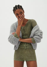 The Vogabay Cardigan from American Vintage is a classic style, that can be worn in all seasons. Featuring chunky knit made from a mohair and alpaca mix. The shorter body creates a more feminine look and fit, whilst the dropped shoulders is perfect for a more relaxed style.
