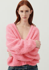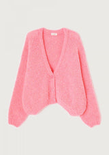 The Zolly Cardigan from American Vintage features a V-neckline, button fastening, long blouson sleeves and ribbed edge detail. Crafted from an Italian wool blend, this cardigan features a boucle style knit that adds texture and dimension to this must-have piece.