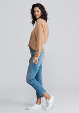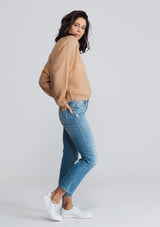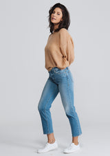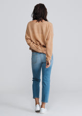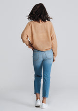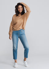 The American Vintage Zoubi Loose Knit Jumper features a relaxed fit design that is slightly cropped, drop shoulder, long sleeves and round neckline. Crafted from an Mohair Blend, this jumper is incredibly soft to touch. Due to the type of stitch this garment has been crafted in; it makes it slightly transparent. Would recommend a thin cami/tank option to wear underneath.