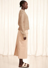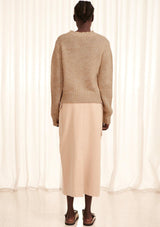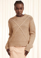 The Mia Cable Knit from Apartment Clothing features a high ribbed neckline, cable design detail, and full length sleeves with ribbed cuffs and hemline.