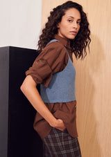 The Dara Knit Vest from Apartment Clothing offers a cropped fit with a deep V-neckline emphasised by a squared centre, as well as dropped armholes for increased comfort. Detailed with ribbed trimmings at the neckline and hem, this vest is crafted from a wool-cotton blend, making it ideal for layering over shirts to create intriguing silhouettes.