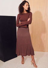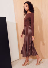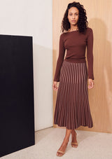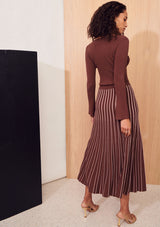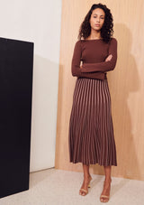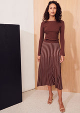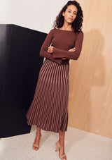 The Dice Cropped Knit from Apartment Clothing features a boatneck, cropped length and full-length fitted sleeves with a slight flare at the cuffs. This knitted top is a slim fitting silhouette with generous stretch and tiny ribs throughout.