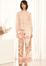The Eve Smocked Top from Apartment Clothing features wide crew neckline with smocked detail from the centre front, keyhole button fastening at the centre back neck and bracelet length elasticised sleeves. Made from 100% linen, this gauzy, semi sheer top also features delicate frill detailing on the armholes and body for a subtle charm.