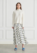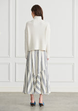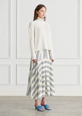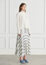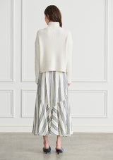 The Lou knit features a wide textured rib finish, soft turtleneck and wide relaxed body that falls to the hip.