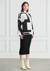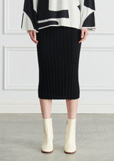 The Lou Ribbed midi skirt is a crafted in a wool and cotton blend with wide rib finish. It is a fitted, midi length skirt.. Designed to be worn with a simple tee through spring or layered with your favourite knitwear as the weather cools down.