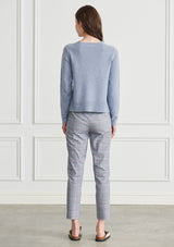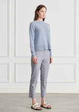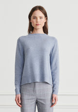 The ulli utilitarian knit is a simple silhouette crafted in a merino wool/cotton blend. Featuring crew neckline with ribbed binding, relaxed fit through the body and textured detail on the hemline that falls to the hip.