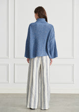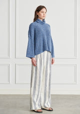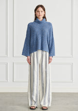 The Victor Turtleneck features a plait like textured knit, soft high turtleneck and wide relaxed body that falls to the hip.