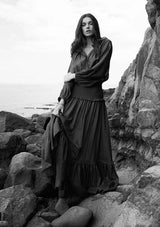 The Clemence Maxi Dress by Bird & Knoll crafted from a lightweight cotton silk blend, which is a non-stretch fabrication. This dress features a relaxed fit that sits comfortably across the shoulders, with an oversized fit through the top and cinched at the waist. The back neckline has a shell button closure, and the waistband is elasticated that sits at your true waist. Slip is included.