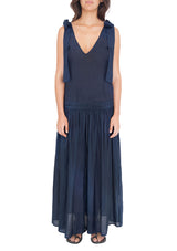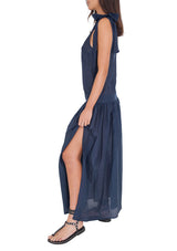 Bird & Knoll’s silk cotton blend Giselle maxi dress is one of the most elegant ways to cover up on vacation. This stunning drop waist maxi dress has a floor sweeping silhouette and statement oversized bow tie strap details. With a flattering v neckline and knee length height side splits it is sure to be perfect for any occasion.