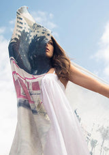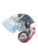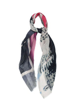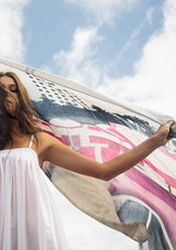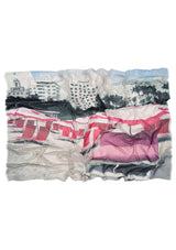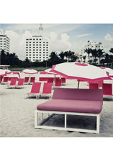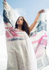 The Miami Lounging Around Scarf by Bird & Knoll features a photographic image of sun loungers and umbrellas lined on south beach Miami.