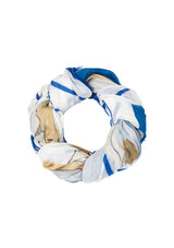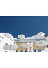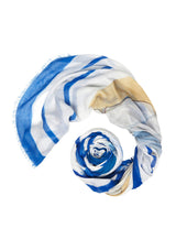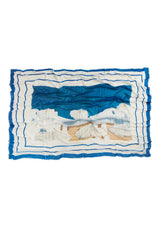 The Bird & Knoll Mykonos | Umbrellas Scarf is crafted from a Cashmere-Modal blend. Capturing the umbrellas of mykonos spread-out, against the sharp contrast that is the brilliant blue cyclades sky.