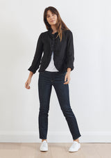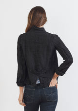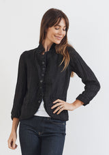 The CP Shades Dree Jacket is crafted from 100% Linen. This Jacket features long sleeves, a short-fitted silhouette, button down front and mandarin collar.