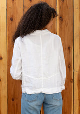 The CP Shades Lisbon Linen Jacket is the perfect summer staple. This playful basic, manufactured in the USA is crafted from lightweight linen. Featuring soft lapels with button closure, a relaxed body and a curved hemline.