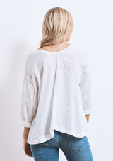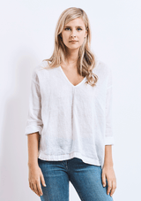 The CP Shades Myka Top is the easygoing addition your wardrobe needs. This versatile piece is crafted from lightweight linen, perfect for the warmer months and is made in the USA. Featuring a soft V neckline, long sleeves and a slightly boxy relaxed body.