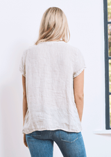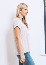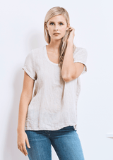 The CP Shades Elodie Tee is a timeless basic. Crafted from a limited special edition gauzed linen, manufactured in the USA, this shirt is a must-have. This simple tee features a round neckline, short sleeves and relaxed body.