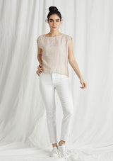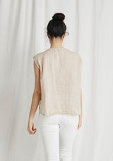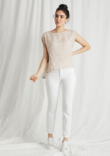 The CP Shades Rowan Top crafted from 100% linen. It features a relaxed-box shaped silhouette, non-set in cap sleeve, a round neckline and hi-lo hem that sits on your hips.