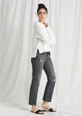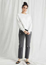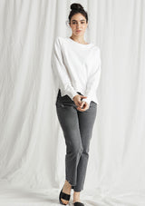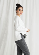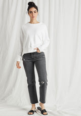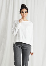 The CP Shades Roxy Sweatshirt is crafted from 100% Cotton. This Sweatshirt features a thick boat neckline, long sleeves, cuffs, and high-low hemline with splits.