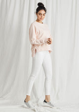 The CP Shades Roxy Sweatshirt is crafted from 100% Cotton. This Sweatshirt features a thick boat neckline, long sleeves, cuffs, and high-low hemline with splits.
