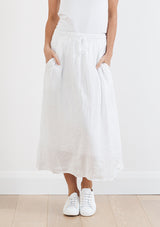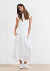 The CP Shades Tilda Skirt is crafted from 100% Linen with a light cotton lining. This Skirt features long relaxed A-line silhouette, an elastic drawstring waistband and pockets.
