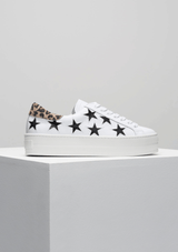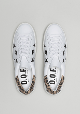The Bella Star Sneaker from Department of Finery features black leather star across the side, and a contrasting leopard leather heal.