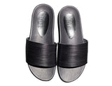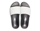 The sports-luxe inspired slides offer a moulded footbed, rubber sole and leather lined strap.