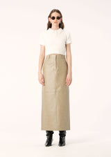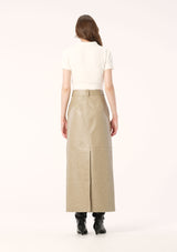 The Akari Skirt from Elka Collective is a must-have for elevated winter dressing with its on-trend high waist, hook and eye with zip front opening, and sleek longline silhouette. Crafted from vegan leather with an embossed croc print design, this skirt is both stylish and sustainable. A timeless piece for high rotation year after year.