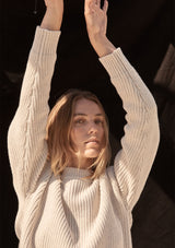 The Andie Knit by Elka Collective is crafted from 100% cotton in a chunky yarn. A boxy fit with a slightly cropped body length, it features a dropped shoulder with ribbed neck, cuffs and hem.