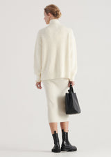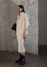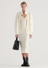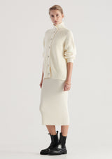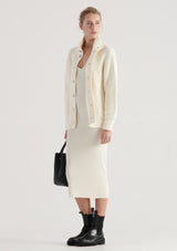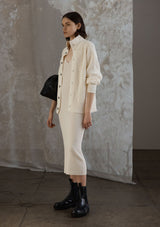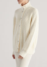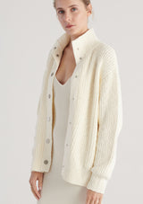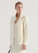 The Augusta Knit Cardi from Elka Collective features a high neckline with a metal snap button closure and long sleeves with ribbed banded detail on the cuffs and hemline. Crafted from 100 % cotton, this cosy knitted cardigan is soft, light and breathable. Add warmth and style to any look with this elevated women’s cardigan.