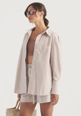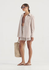 The Clare Shirt by Elka Collective is a classic oxford style shirt made for transeasonal dressing. Crafted from a crisp 100% cotton and cut to an oversized silhouette, it features a classic collar, chest patch pocket, elongated cuffs and curved hem. Wear open over a tank with jeans or pair as a twin set with the Clare Short.