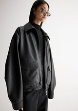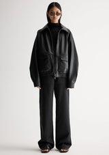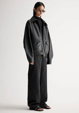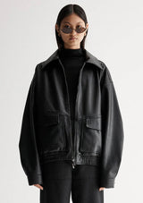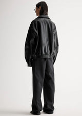 The Ebony Jacket brings a relaxed, effortlessly casual energy to everyday outfitting. Made of Elka Collective's signature vegan leather, this jacket is cut to an oversized silhouette, ideal for comfortable layering throughout the seasons. Accentuated by the large pockets, zip through front, and large collar, this jacket becomes an essential piece.