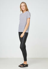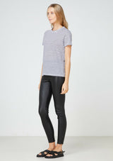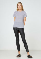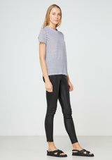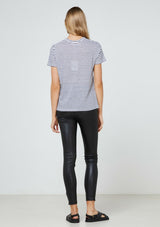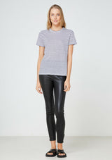 The EC Linen Crew Neck Tee from Elka Collective is a classic short sleeve crew tee made from premium 100% linen jersey in a navy stripe. It features a self bind neck and sleeve.