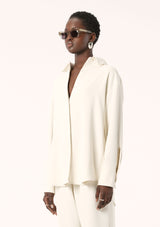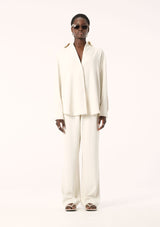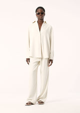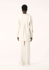 The Edra LS Shirt from Elka Collective is an ideal addition to your autumn wardrobe as temperatures begin to shift. Crafted from a mid-weight fabric, this shirt drapes over the body, falling to a beautifully flattering fit. It features a classic collar, drop shoulders, full length sleeves, curved cuff detail with monogram buttons and a curved hemline. Designed in a classic shirt style, the concealed button placket and rear pleating create a distinctly feminine silhouette. Complete your ensemble by pairing it with the Edra Pant for a polished and coordinated look.
