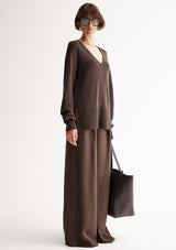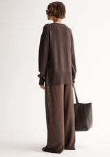 Made of 100% Merino Wool, the Ellis Knit by Elka Collective has a deep v-neckline, full length sleeve and a relaxed, slightly oversized silhouette ideal for transeasonal layering. The deep ribbed hem with side split detail and casual dropped shoulder adds structure, giving the option to wear on or off the shoulder