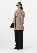 The Esther Jacket from Elka Collective is crafted from a luxurious wool blend, featuring a slightly oversized silhouette with a button-through front, welted pockets and a classic collared neckline. Its mid-length design and belted waist effortlessly blend style and versatility, making it suitable for both daytime and evening wear. Offering a tailored appearance without the stiffness of a trench or blazer, this jacket is perfect for relaxed outerwear that transitions seamlessly through the changing seasons.