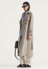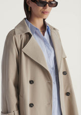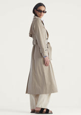The Francisco Trench from Elka Collective features double breasted fastening, self-tie waist and cuffs and falls to below the knee in length. Tailored for a relaxed fit, this trench is a classic wardrobe foundation with evolving style possibilities.