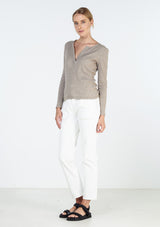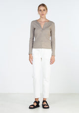 A premium basic in 100% cotton rib, the Geneva top will become a favourite wardrobe staple, featuring long sleeves and an open V-neck.