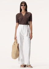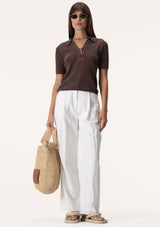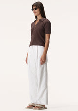 The Haigh Knit Top by Elka Collective features a ribbed collar, placket with buttons and short sleeves. This simple silhouette creates an elevated look paired back with fresh whites and soft natural linens. Complete the look with the matching Haigh Knit Skirt.