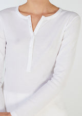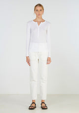 A luxury basic that will become a favourite this season, the Infinity top is crafted in a soft ribbed cotton with tight rib and comfortable stretch, featuring long sleeves and henley neckline.