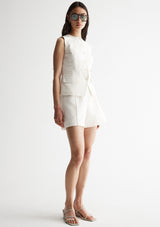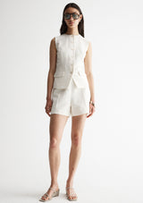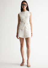 In continuing with the rising trend of casual workwear, the Ira Vest from Elka Collective offers a sleek and versatile addition to your capsule wardrobe. Made of a lightweight textured cotton blend, the Ira Vest is cut to a slim fit tailored silhouette with a high round neckline and button down front. Accentuated with front faux pockets and a back adjuster strap, the Ira Vest can be styled with the matching Ira Short.