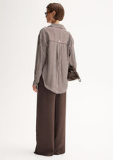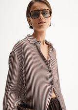 The Jamie Stripe Shirt by Elka Collective is crafted by 100% Viscose and features a relaxed oversized design with one breast pocket.
