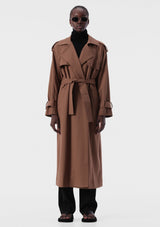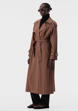 The Josefine Trench from Elka Collective features a double breasted fastening, self-tie waist and cuff and falls to below the knee in length. Crafted in a fabrication with slight stretch, this Trench is a classic wardrobe foundation with evolving style possibilities.