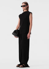 The Lenny Top from Elka Collective features a funnel neckline and sleeveless design. Crafted from a fine permanent pleating poly fabrication, this timelessly elegant top offers stretch for comfort. Coordinate it with the Lenny Pant for a complete look.