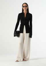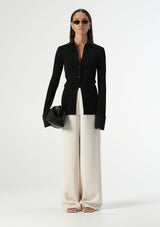 The Loretta Shirt from Elka Collective features a traditional collar, button front placket and full length sleeves with buttoned cuffs. The back is accented with darts for a polished fit. Crafted from a luxe mid-weight fabric that drapes over the body, resulting in a sleek and fitted silhouette that can easily transition from the workplace to weekend wear.