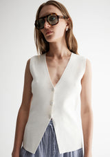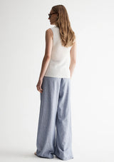 The Lulu knit is made of a luxe cotton blend knit fabric with a contrasting crochet back, the Lulu Knit Top is cut to a slim fit silhouette with deep v-neckline, front hook and eye closure, and chrome hardware feature.