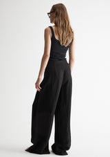The Mahina Pant is made of a luxe fabric blend with a soft hand feel and effortless drape, these pants are cut to a full-length silhouette with wide leg and flat, fitted waistband with zip fly closure