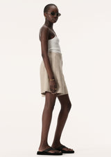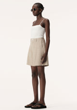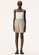 The Maja Short from Elka Collective features a flat front, zip and feature button fastening with side seam pockets, welted back pockets and a slightly flared silhouette. This tailored short is crafted from viscose and linen blend and can be styled with any of the tops on offer for the ultimate summer look.