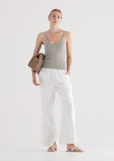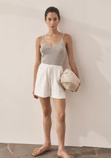 The Mira Singlet from Elka is an elevated core layer for your wardrobe. An everyday staple, this women’s singlet is crafted with a v neckline and back. This form fitting top is ribbed for a textured and comfortable feel and adds a tailored edge to any look.