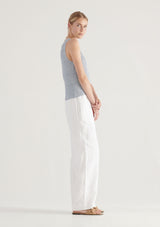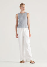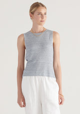The Molly Knit Tank from Elka is an elevated essential. This tank includes a regular fit and high cut neck. Crafted from a linen blend yarn that is breathable and ribbed for a softer feel. This timeless item is the perfect base to any look.