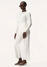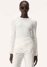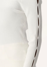 The Nadia Knit Top by Elka Collective features a crew neckline and long sleeves with a cut out feature from shoulder to wrist. Crafted from a ribbed viscose-nylon blend, this simple but stylish top has a soft feel and slim fit with ample stretch for comfort.